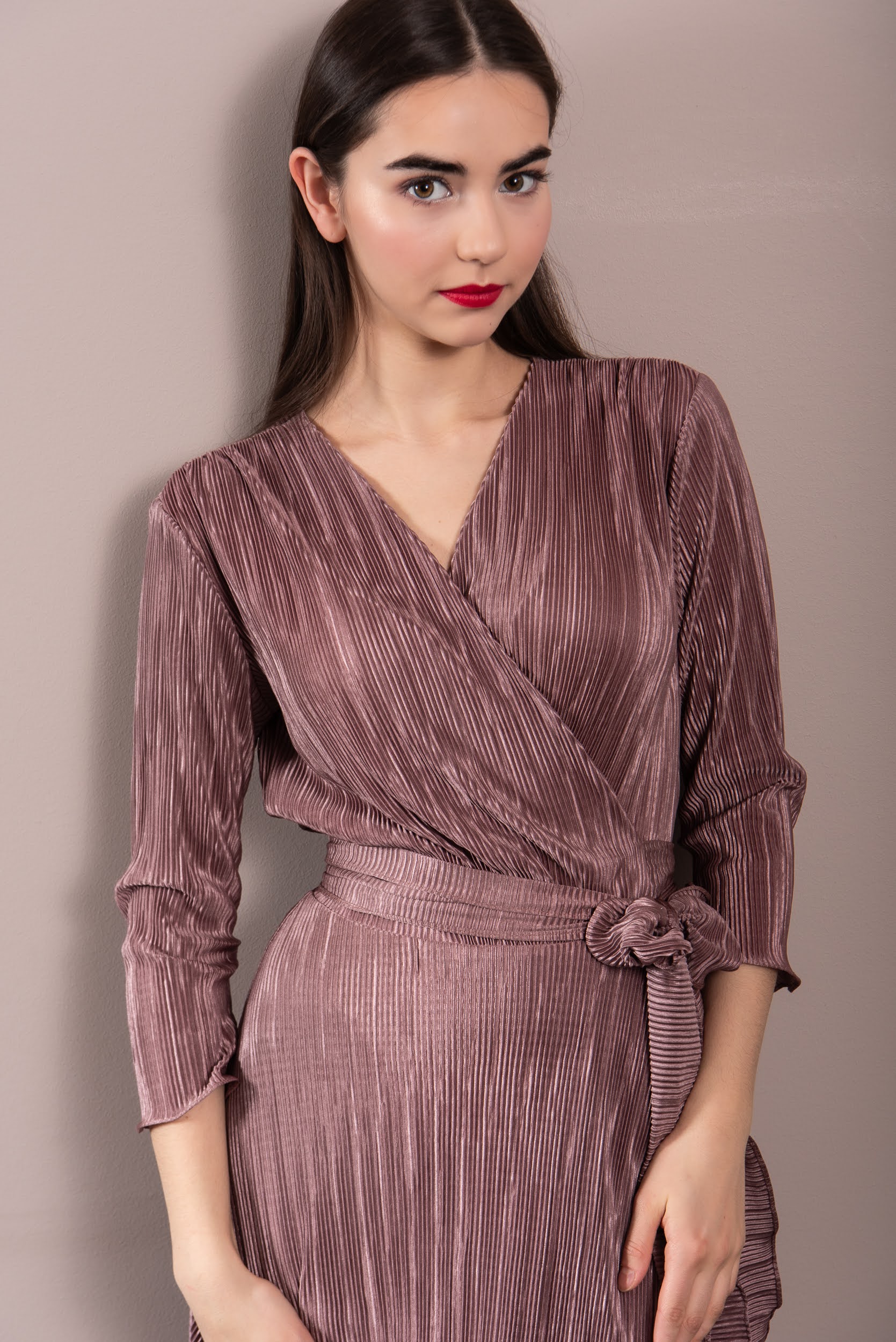 See peenplissee polüestertrikotaažkangas sisaldab elastaani, mis annab kangale pehmuse, hea langevuse ning vastupidavuse. Kangas on tehtud moodsa tehnoloogiaga nagu spordikangas, see hingab, reguleerib temperatuuri ning ei aja higistama. Sellest kangast kleit on ideaalne reisikleit, on kerge, ei kortsu, saab kohe kohvrist selga panna. Kleiti saab pesta masinas õrnal režiimil ja jaheda veega. Vt hooldusjuhendit kleidi seelikuosa küljeõmbluses.