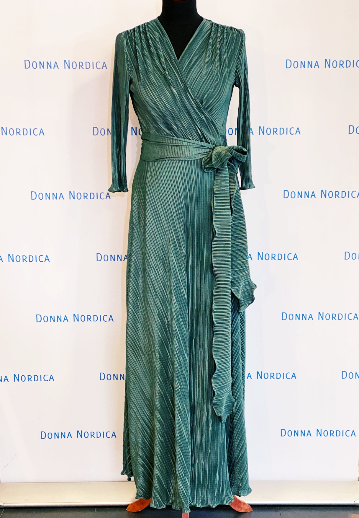See peenplissee polüestertrikotaažkangas sisaldab elastaani, mis annab kangale pehmuse, hea langevuse ning vastupidavuse. Kangas on tehtud moodsa tehnoloogiaga nagu spordikangas, see hingab, reguleerib temperatuuri ning ei aja higistama. Sellest kangast kleit on ideaalne reisikleit, on kerge, ei kortsu, saab kohe kohvrist selga panna. Kleiti saab pesta masinas õrnal režiimil ja jaheda veega. Vt hooldusjuhendit kleidi seelikuosa küljeõmbluses.