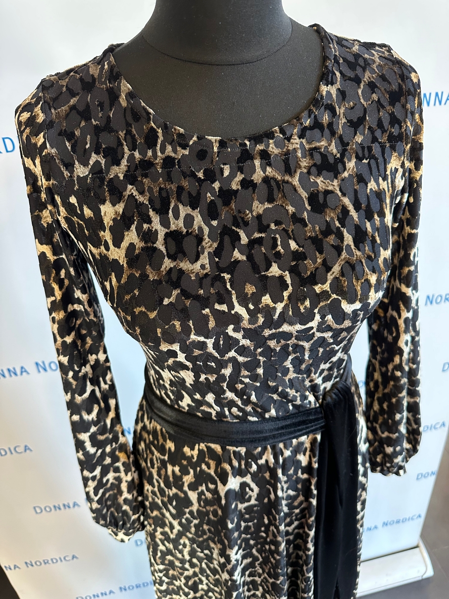 See sametmustrilisest trikotaažist kleit on pestav käsi-, õrnpesus jaheda veega, välimine pool seespool. Hooldusjuhend on kleidi küljeõmbluses. Materjal 100% polüestersamet, pehme ja hingav, mittekortsuv, mustri pinnalt plüüsjas.