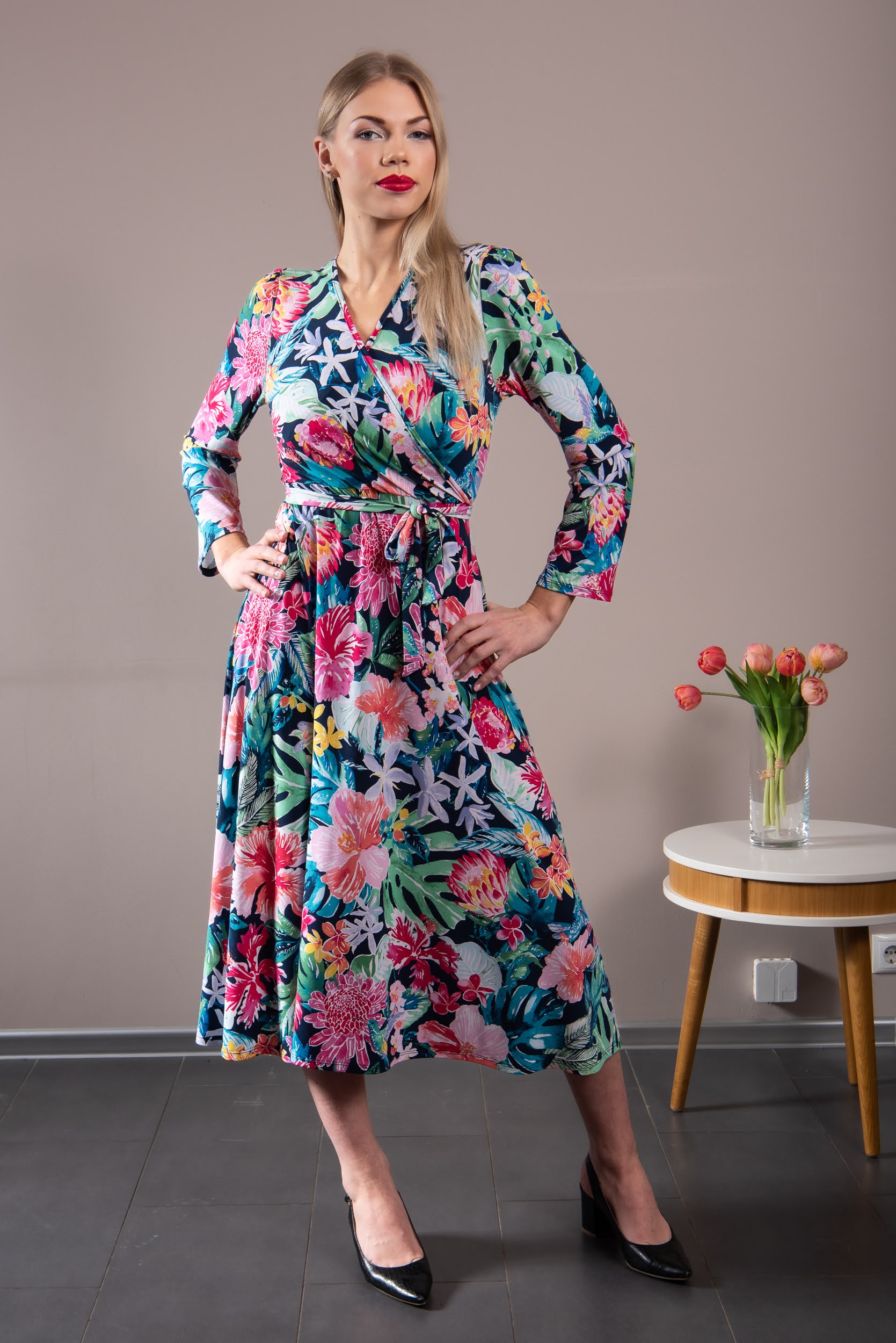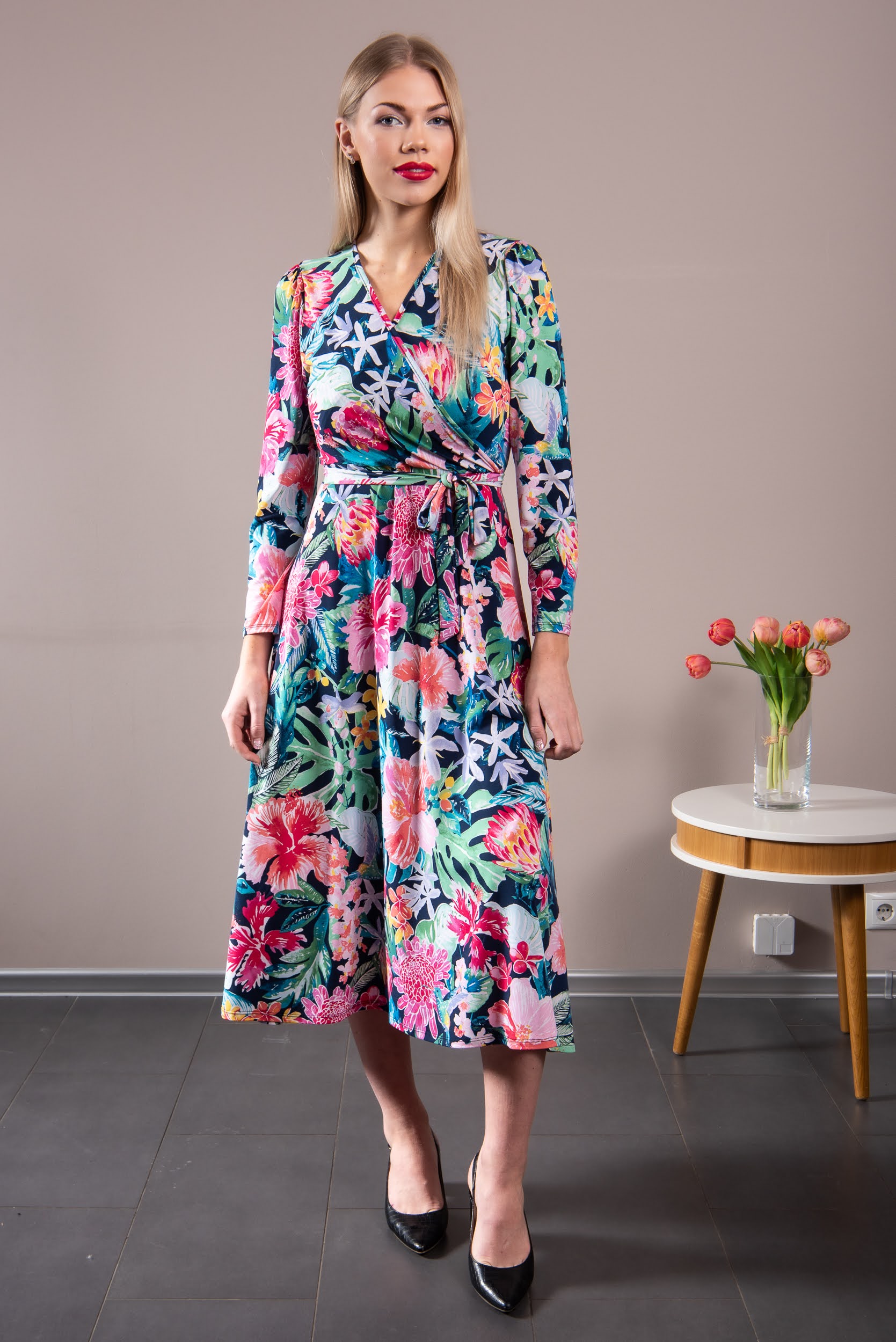 Materjal 100% polüester, pehme ja hingav, mittekortsuv, valmistatud spordikanga tehnoloogiaga. Kleiti saab pesta jaheda veega (30 kraadi) ja masinas, see ei vaja triikimist. Aga kui on vaja triikida, siis läbi märja puuvillase lapi või siis pahemalt poolt ja jahedama rauaga. Mitte valgendada ega kuivatis kuivatada.