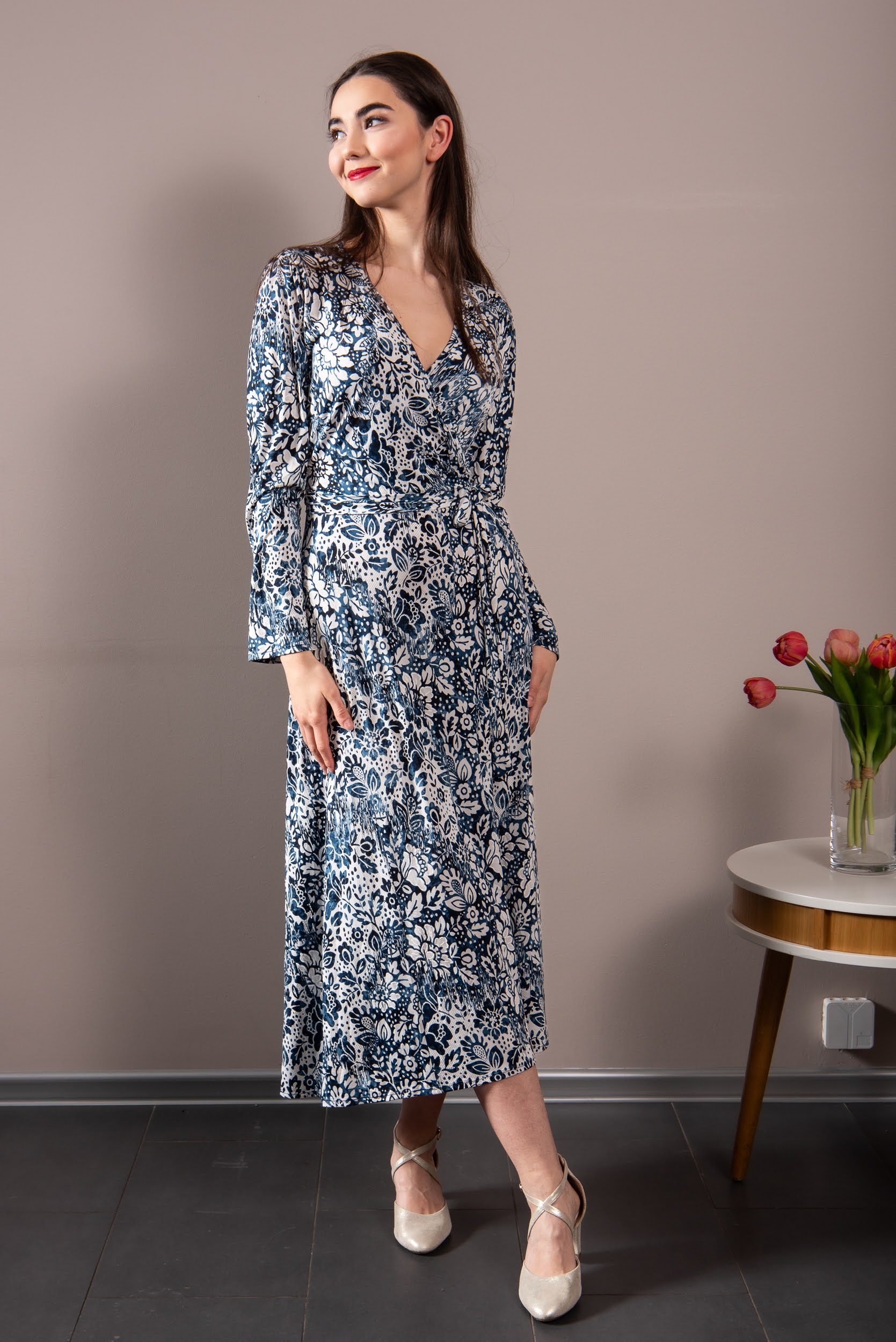 Materjal 100% polüester, pehme ja hingav, mittekortsuv, valmistatud spordikanga tehnoloogiaga. Kleiti saab pesta jaheda veega (30 kraadi) ja masinas, see ei vaja triikimist. Aga kui on vaja triikida, siis läbi märja puuvillase lapi või siis pahemalt poolt ja jahedama rauaga. Mitte valgendada ega kuivatis kuivatada.