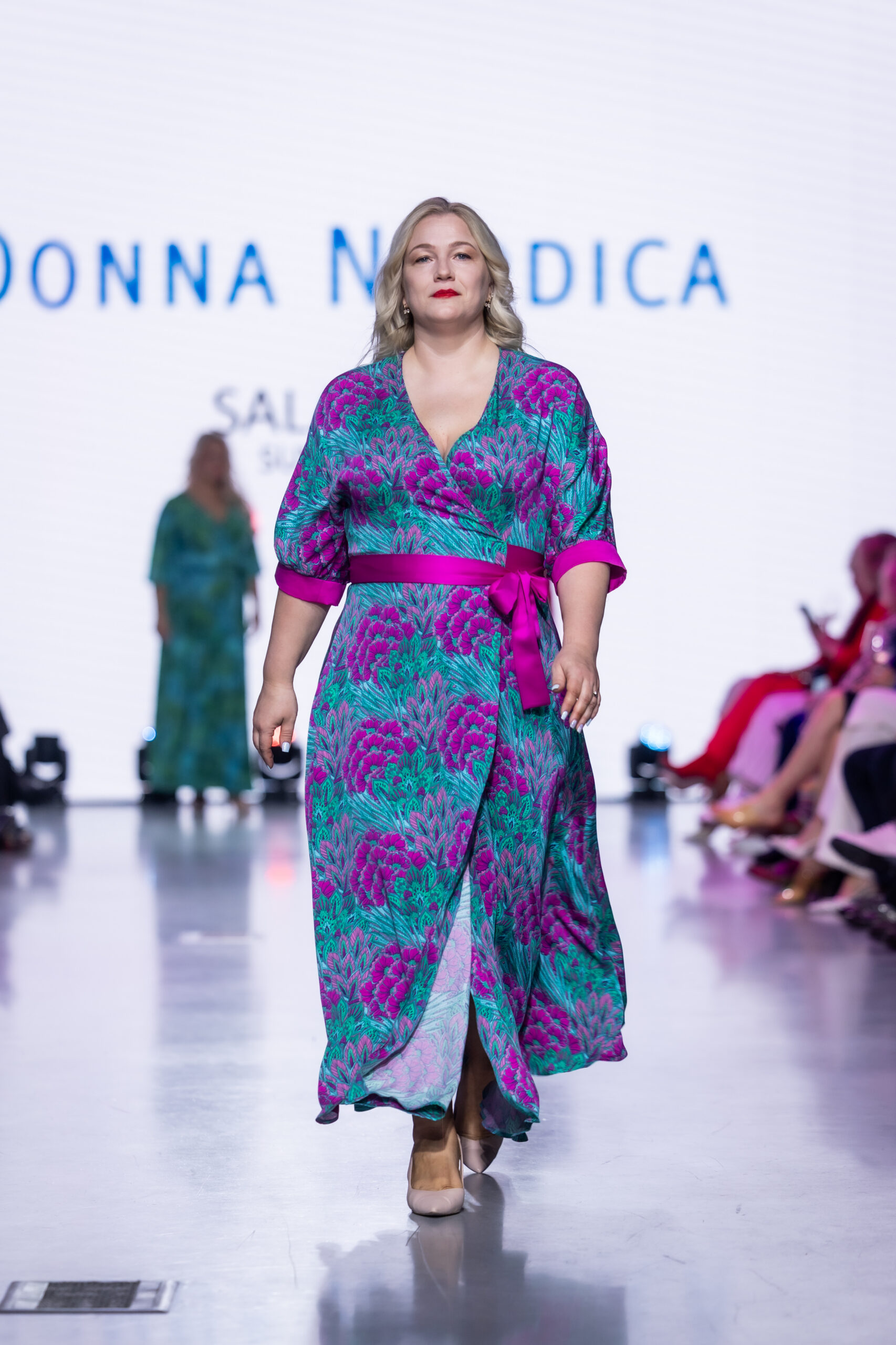 Särav türkiisroheline ja fuksiaroosa satiinist viskooskleit on dekoratiivsete lillekobarate mustriga ning olemuselt pehme ja nahal siidine. See maksipikkuses kimonokleit on lühikeste varrukatega, ning sirgelõikeline, seelik kergelt A-lõikega. Vöö ja varrukate mansetid on kontrastsest fuksiaroosast satiinist. Kleidi üldpikkus taga kaelusest alla (s. 48) on 143 cm ja varruka pikkus õlast on 38 cm. Tellides oma suurust, saab muuta kleidi pikkust ning varrukate pikkust, kirjuta! Selle kleidi tegumood ja muster sobivad kanda aastaringselt.