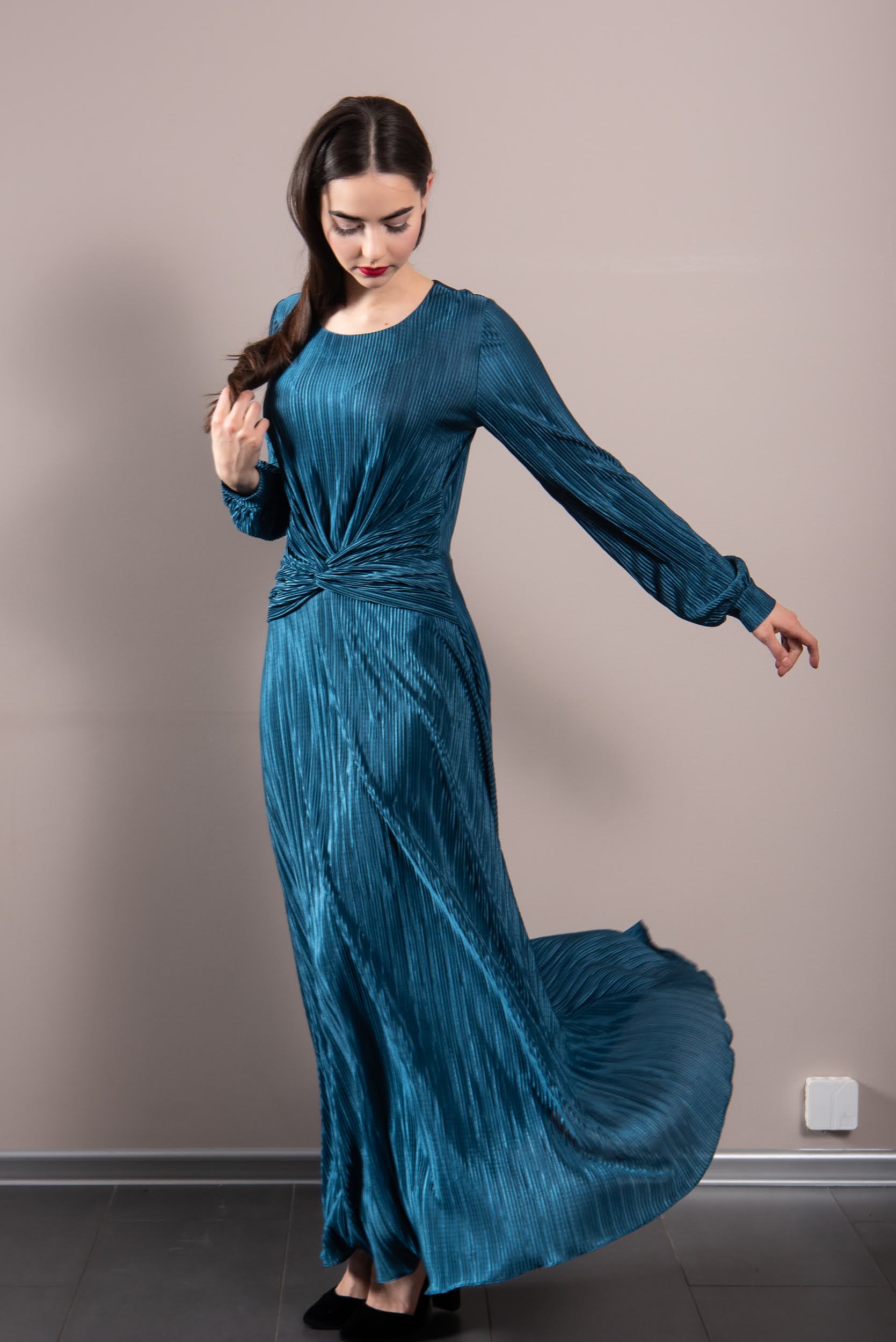 See peenplissee polüestertrikotaažkangas sisaldab elastaani, mis annab kangale pehmuse, hea langevuse ning vastupidavuse. Kangas on tehtud moodsa tehnoloogiaga nagu spordikangas, see hingab, reguleerib temperatuuri ning ei aja higistama. Sellest kangast kleit on ideaalne reisikleit, on kerge, ei kortsu, saab kohe kohvrist selga panna. Kleiti saab pesta masinas õrnal režiimil ja jaheda veega. Vt hooldusjuhendit kleidi seelikuosa küljeõmbluses.