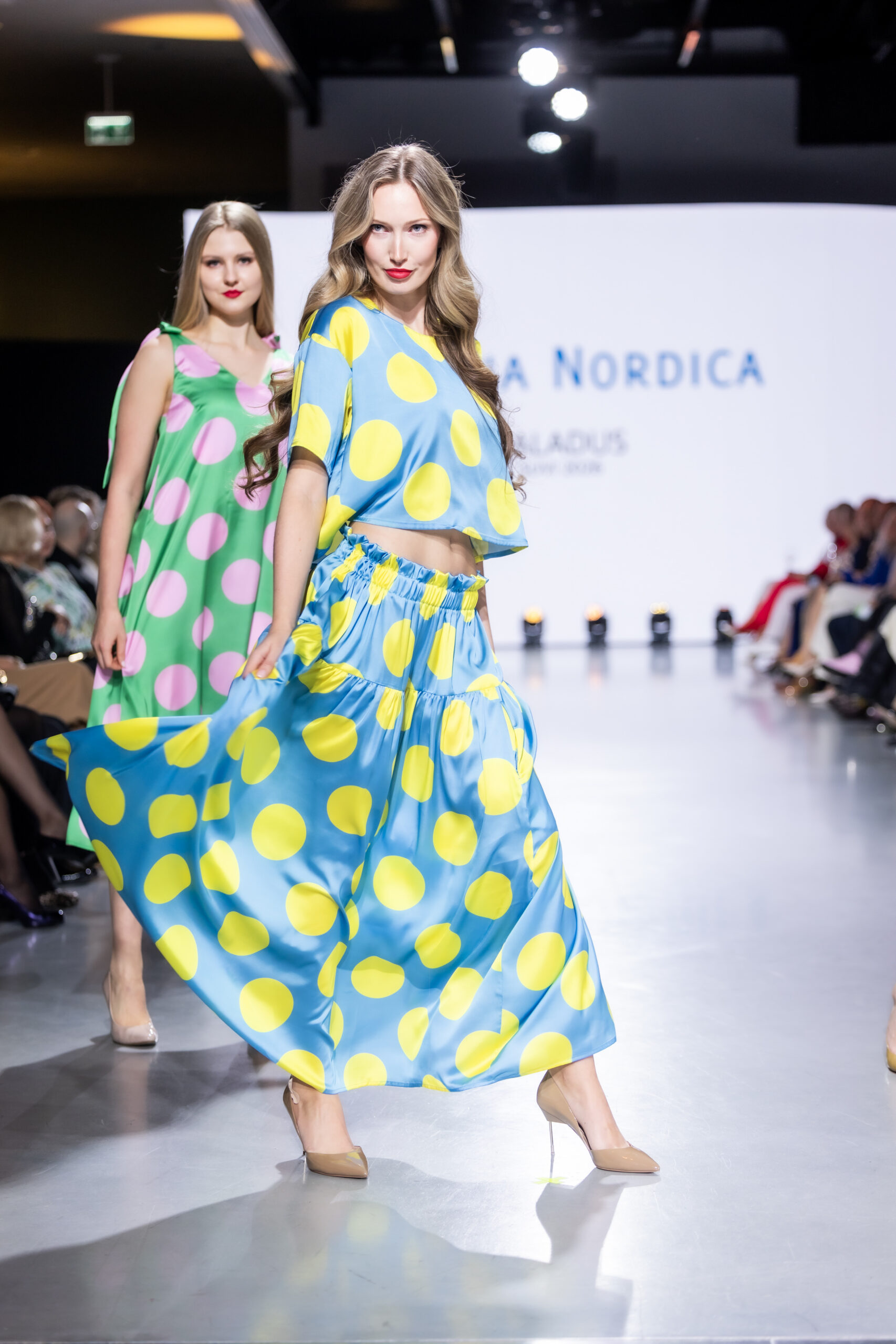 See satiinkangas on läikiv, libe ja kerge 100% polüesterkangas, mis sobib ideaalselt suvepäeva. Kangas on tehtud moodsa tehnoloogiaga nagu spordikangas, see hingab, reguleerib temperatuuri ning ei aja higistama. Kleiti saab pesta masinas õrnal režiimil ja jaheda veega. Vt hooldusjuhendit kleidi seelikuosa küljeõmbluses.